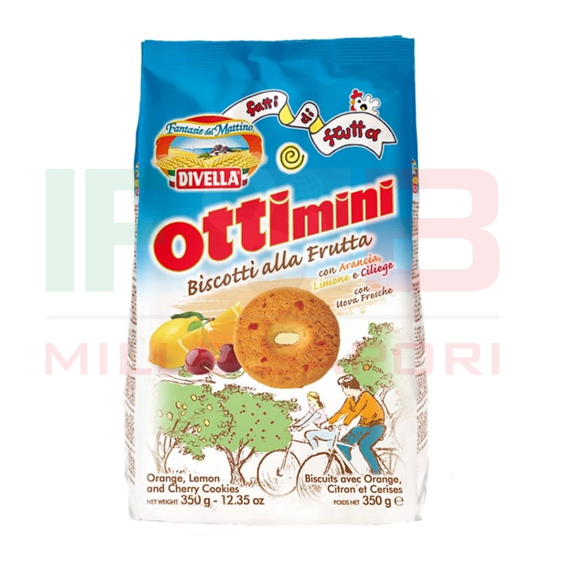 Biscotti ottimini con la frutta DIVELLA - Kruche ciasteczka z owocami (pomarańcz, cytryna, czereśnia) 350gr