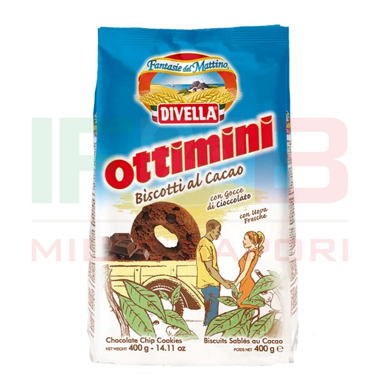 Biscotti ottimini al cacao DIVELLA - Kruche kakaowe ciasteczka z kawałkami czekolady 400gr